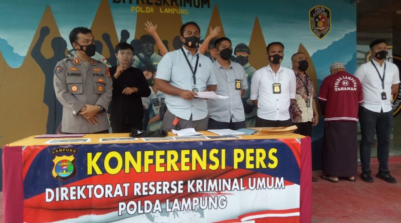 Direktur Reserse Kriminal Umum ( Dir Reskrimum) Polda Lampung Kombes Pol Reynold Hutagalung melalui Kepala Sub Direktorat 1 Keamanan Negara (Kasubdit 1 Kamneg) Polda Lampung AKBP Dodon Priyambodo didamping Kepala Sub Bidang Penerangan Masyarakat ( Kasubbid Penmas) Bid Humas Polda Lampung AKBP Rahmad Hidayat pada saat konferesi pers mengatakan, pihaknya telah menetapkan seorang tersangka berinisial IMR bin BR (46) warga kampung Banjar Agung Tulang Bawang.