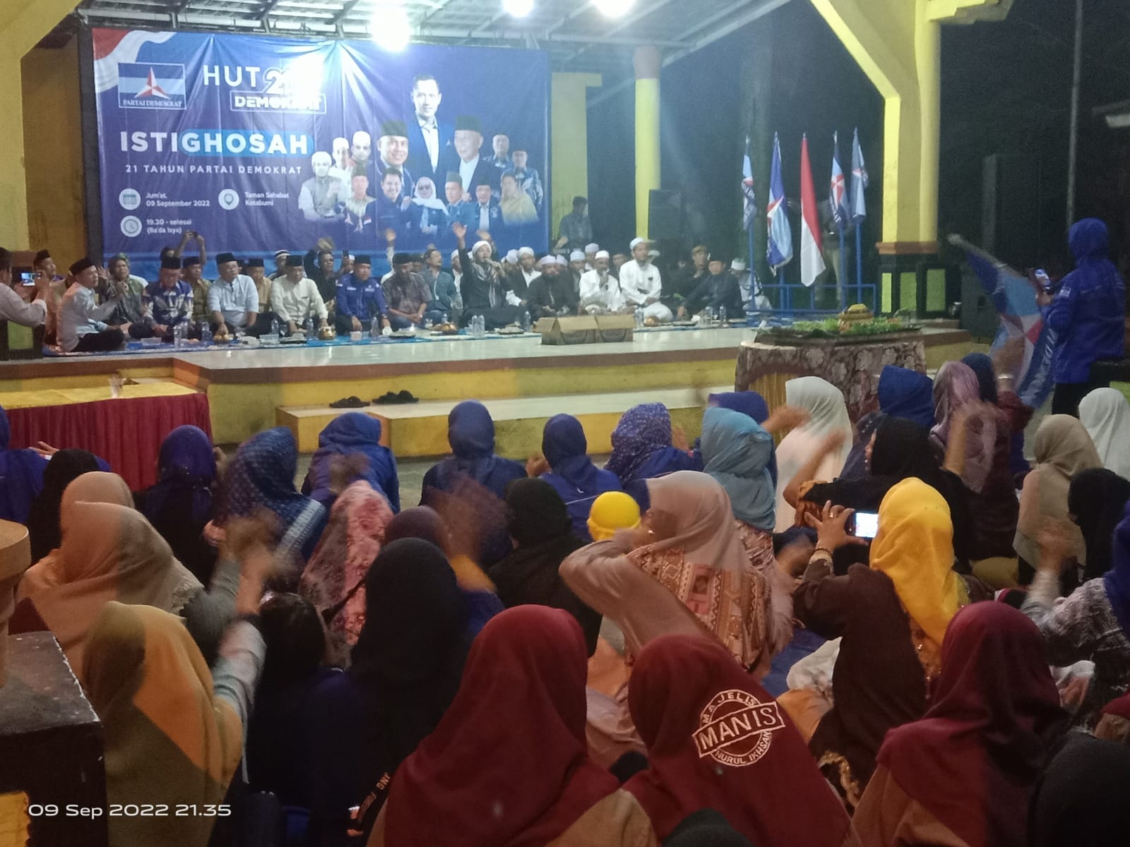 LAMPUNG UTARA, RATUMEDIA.ID- Guna memperingati hari lahir (harlah) ke-21 Partai Demokrat, pimpinan dan kader Demokrat Lampung Utara beristigasah dan memotong nasi tumpeng di Taman Sahabat, Jumat  (9/9/2022).