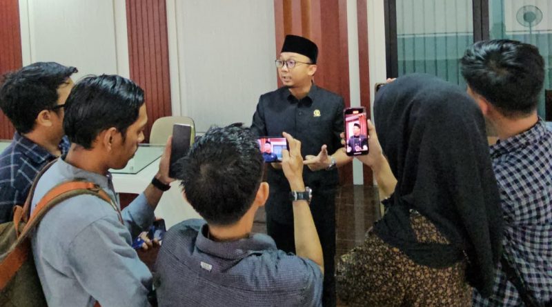 BANDARLAMPUNG- Anggota Fraksi PKS DPRD Lampung, Syukron Muchtar, menginterupsi dalam rapat paripurna terkait jawaban Gubernur Lampung di ruang sidang DPRD setempat, Rabu (2/7/2025).