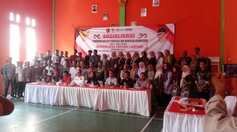 TANGGAMUS– Anggota DPRD Lampung, AM. Syafi’i, menyosialisasikan Pembinaan Ideologi Pancasila dan Wawasan Kebangsaan di Pekon Sedayu, Kecamatan Semaka, Kabupaten Tanggamus, Sabtu (5/7/2025).