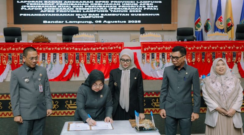 Wakil Gubernur Lampung Jihan Nurlela dan Wakil Ketua I DPRD Lampung, Kostiana, meneken nota kesepahaman itu dalam Rapat Paripurna Lanjutan di Ruang Sidang Paripurna DPRD setempat, Jumat (8/8/2025).