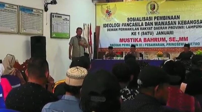 PESAWARAN,    RATUMEDIA.ID     —-     Anggota DPRD Provinsi Lampung, Mustika Bahrum, menyosialisasikan Pembinaan Ideologi Pancasila dan Wawasan Kebangsaan di Desa Sukaraja, Kecamatan Gedong Tataan, Kabupaten Pesawaran, Sabtu (17/1/2026).