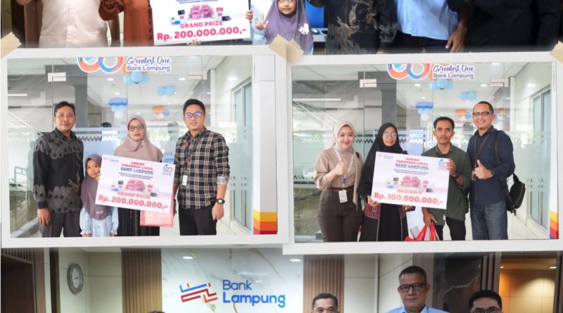 Secara keseluruhan, Bank Lampung menyiapkan total hadiah Rp1 miliar, dengan rincian Grand Prize Rp200 juta untuk satu pemenang, hadiah ke-II Rp100 juta untuk satu pemenang, hadiah ke-III Rp30 juta untuk enam pemenang, hadiah ke-IV Rp25 juta untuk tujuh pemenang, hadiah ke-V Rp25 juta untuk enam pemenang, serta hadiah ke-VI Rp1 juta untuk 195 pemenang