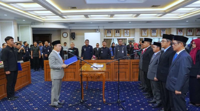BANDARLAMPUNG,    RATUMEDIA.ID      —-     Sekretaris Daerah Provinsi Lampung Marindo Kurniawan, mewakili Gubernur Lampung, melantik dan mengambil sumpah/janji jabatan bagi sejumlah Pejabat Pimpinan Tinggi Pratama, Administrator, dan Fungsional di lingkungan Pemerintah Provinsi Lampung. Acara berlangsung khidmat di Ruang Rapat Utama (Rupatama) Kantor Gubernur, Selasa (31/3/2026).