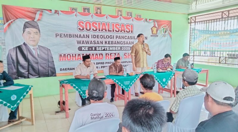 Read MorePRINGSEWU– Anggota DPRD Provinsi Lampung, Mohammad Reza Berawi, menyosialisasikan Pembinaan Ideologi Pancasila dan Wawasan Kebangsaan di Balai Pekon Sumber Bandung,